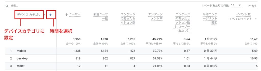【はじめてのGA4】訪問者が使用しているデバイスを確認する